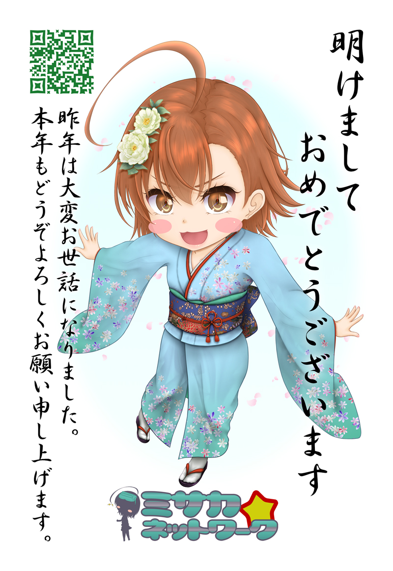 着物姿のミサカ9982号を印刷した2024年の年賀状。C103でお買い物をした方への特典です(先着順)。