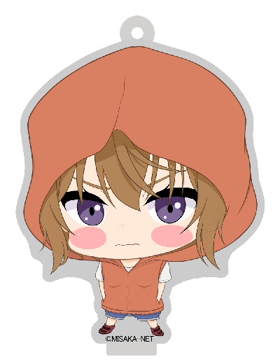 フードをとった絹旗のアクリルキーホルダー。全高8cmの大型。